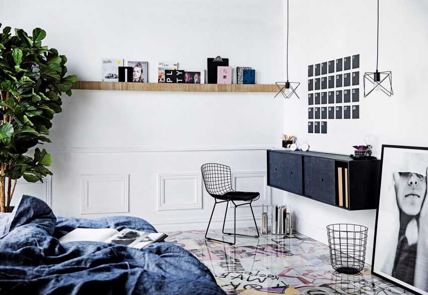 В выборе цвета в молодежной спальне ограничений нет: кто-то отдает предпочтение ярким оттенкам, а кому-т по душе контрастные строгие сочетания черного и белого. Характерной чертой молодежной спальни являются современные гаджеты, мебель — трансформер, необычные пуфы, водяной матрас, декор в стиле хенд-мейд.