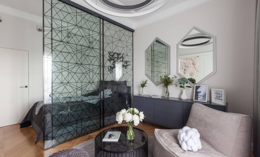 Чтобы одно помещение в квартире выполняло сразу несколько функций, его следует разделить на зоны. Используйте оттенки цвета, перегородки, портьеры, мебель.