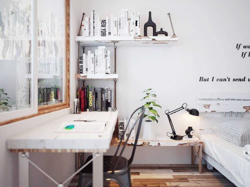 В настоящее время многие используют комнату отдыха в качестве рабочего места. Для этого следует определить границы каждой из зон с помощью стеллажей для документов и книг, мебелью-траснформером, шкафом, откидной крышкой письменного стола или шторкой.