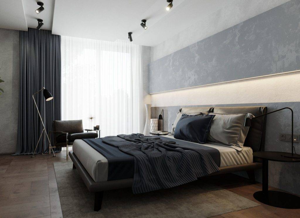 Спальня в стиле минимализм, фото организации освещения пространства