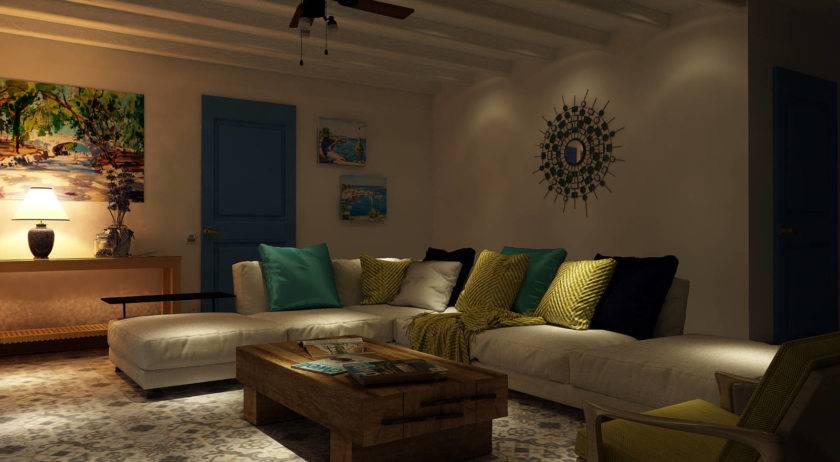 Сразу скажем, что если вы не готовы отказаться от использования в отделке изображений Винни-Пухов, Трансформеров и пр. героев современных мультов. Они ну никак не вписываются в интерьер гостиной в средиземноморском стиле.