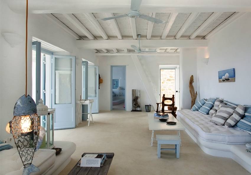 Средиземноморский стиль не отличается изобилием красок и декора. Все в этом интерьере дышит спокойствием.