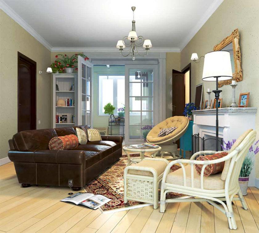 Для гостиной это правило не действует: стиль позволяет разместить больше мебели, чем в остальных комнатах. Во внутренней обстановке преобладают состаренная мебель, вещи с яркими акцентами и элементами стиля кантри. Но все здесь взято по минимуму.