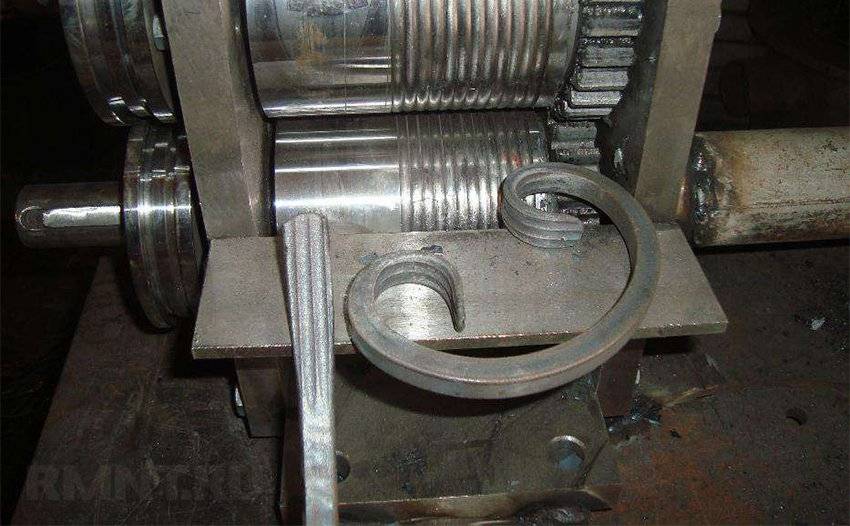 В принципе станок очень схож с функциями «Улитки», только выполняет их совсем другим способом. Металлическая заготовка крепится с одной стороны изогнутого станка, после чего вручную прокручивается и оказывается уже с другой стороны. Так металл приобретает туже самую изогнутую форму.