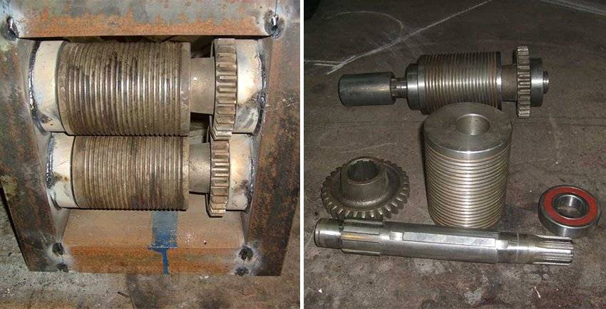 Станок для прокатки «гусиной лапки» (расстояние между вальцами регулируется). Материалы для прокатного станка: шестерни и валы — запчасти от комбайна б/у