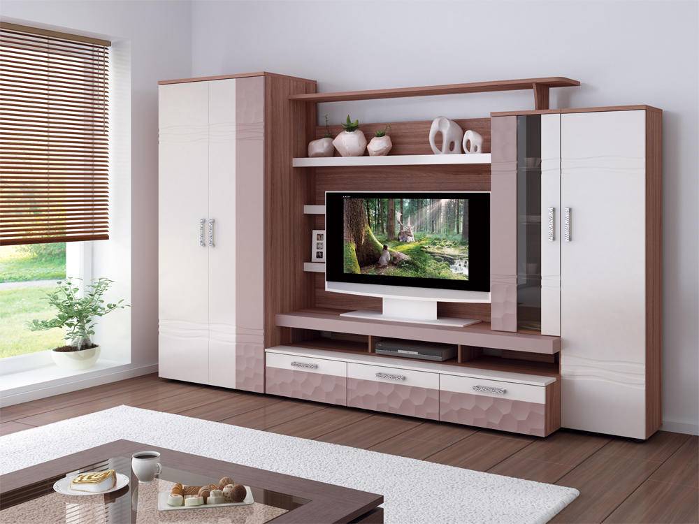 Популярные модели стенок конструируют таким образом, что можно в них вписать всю необходимую технику. Будь то компьютер или телевизор. Все зависит от запросов хозяев гостиной.