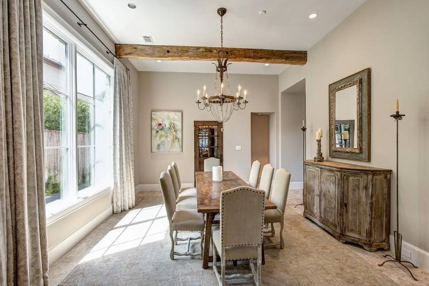 Потолок. В настоящем прованском доме под потолком заметны деревянные балки перекрытия. Если вы строите загородный дом с нуля, то вполне можете использовать этот прием – предупредить строителей о своей идее нужно заблаговременно.