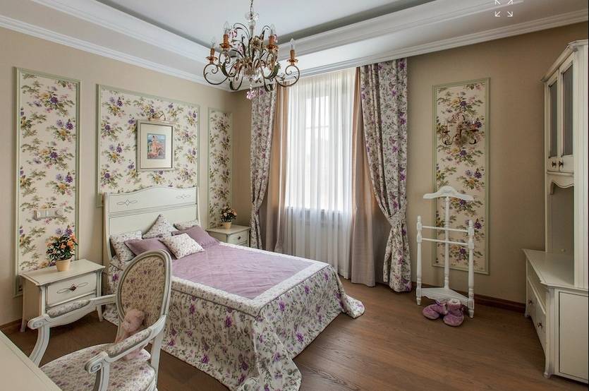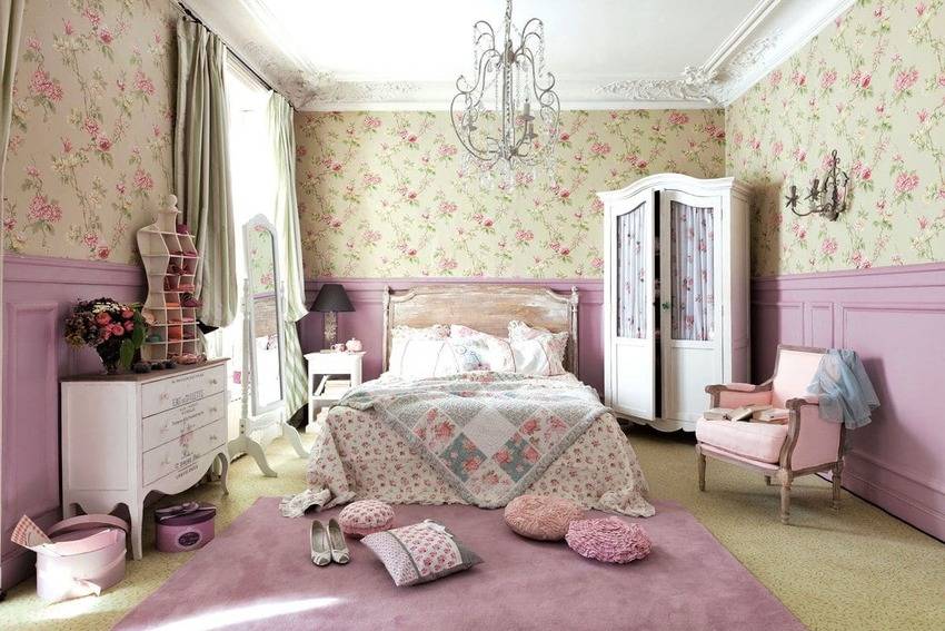 Здесь используются нежные пастельные оттенки, мягкие ткани, различные принты и орнаменты, аккуратная мебель.