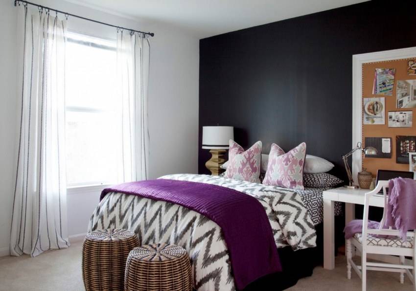 Яркая акцентная стена добавит глубины маленькой комнате
