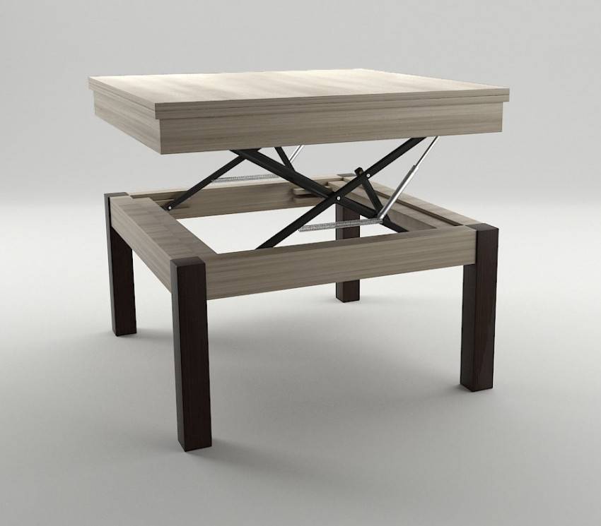 - увеличение высоты — тут происходит приподнимание столешницы за счет поднятия ножек. Эта система трансформирования относится к вертикальным системам превращения;