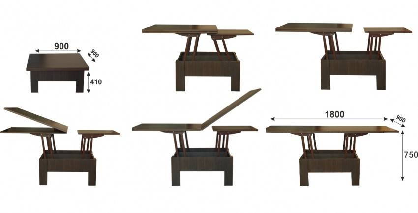 Классификация трансформирующихся столов напрямую связана с используемым механизмом. Давайте рассмотрим наиболее распространенные модификации.