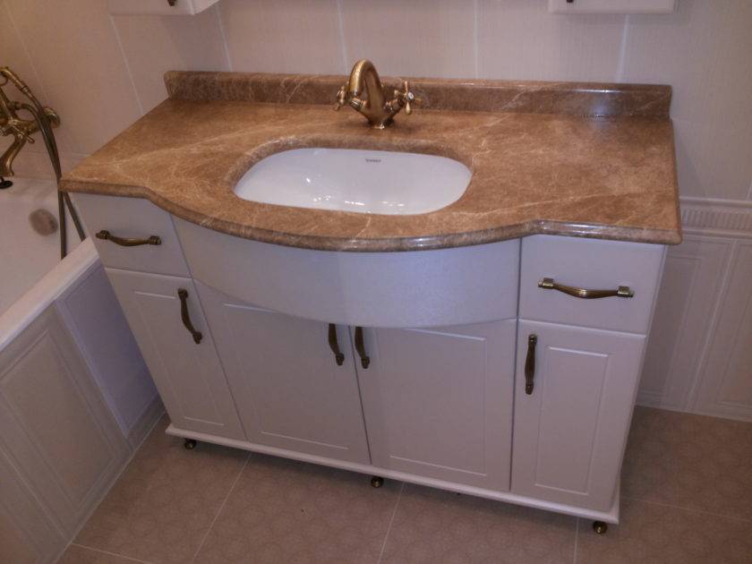 Особенности выбора, разновидности каменных столешниц для ванной, монтаж
