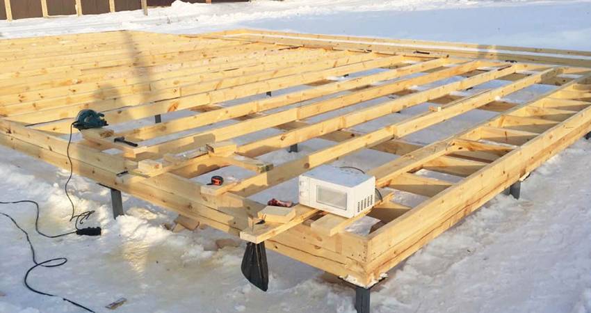 Ростверковый каркас из бруса.