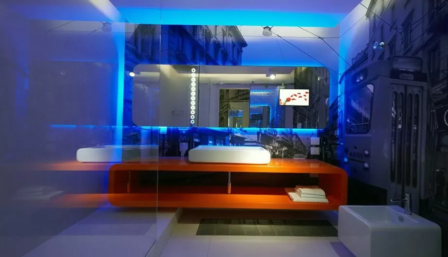 У зеркала над раковиной, на стенах и потолке можно обойтись светильниками с классом защиты IP44.