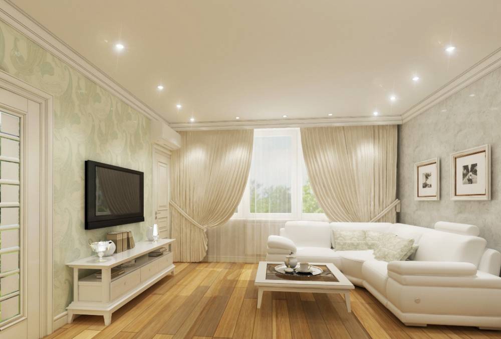 Дизайнеры предлагают ряд классических схем освещения потолка с применением светодиодных приборов: