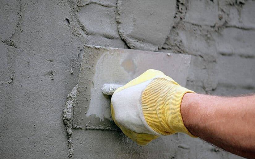 Заделка раствором происходит в два захода. Когда основной слой схватится, его очищают от дефектов шпателем. Поверхность грунтуется. После того как первый слой высохнет, наносится финишный. После высыхания он шлифуется.