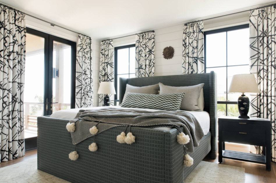 Также можно выбрать контрастные портьеры, которые будут сочетаться с другими небольшими деталями интерьера. В первую очередь стоит учитывать стиль, который был выбран для оформления спальни.