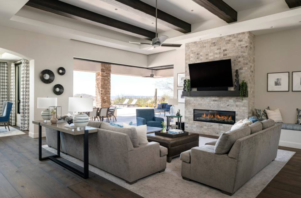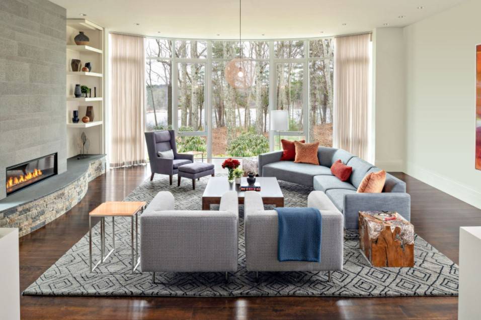 Модный интерьер гостиной в загородном доме 2022