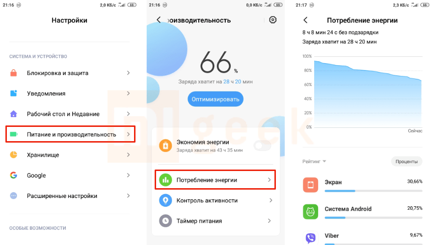 Проверьте, какие приложения «съедают» заряд батареи. Для этого: