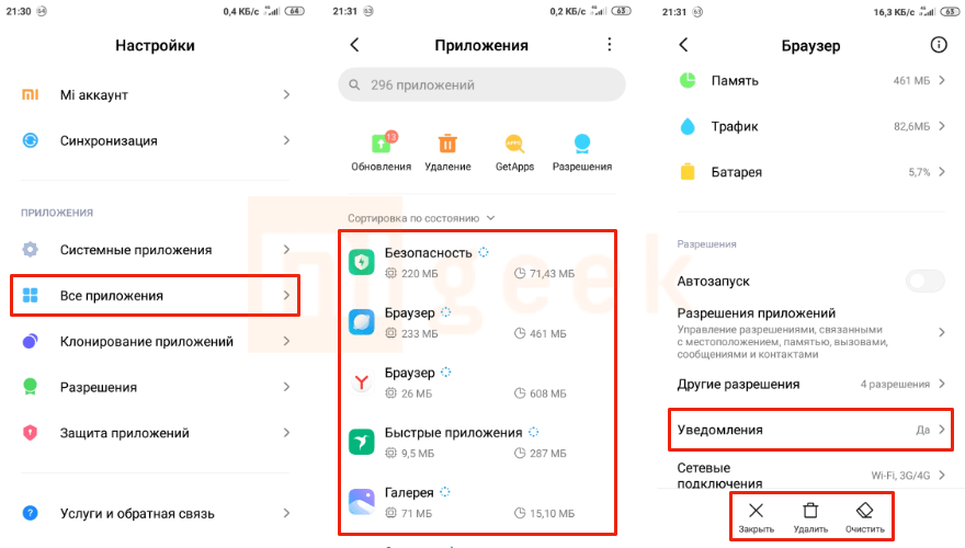 Открываем пункт «Все приложения», выбираем нужное и проделываем необходимые действия.