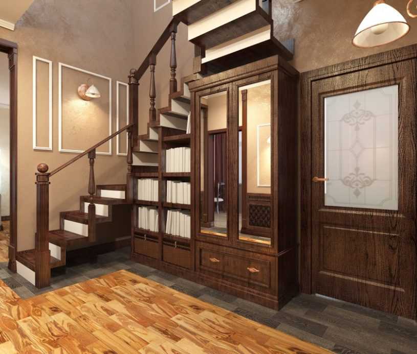 Если в холле есть лестница, то пространство под ней стоит задействовать в интерьере по максимуму. Есть несколько доступных вариантов, как это сделать. Это могут быть небольшие полочки для обуви, головных уборов, перчаток и варежек, зонтов, книг или домашнего телефона.