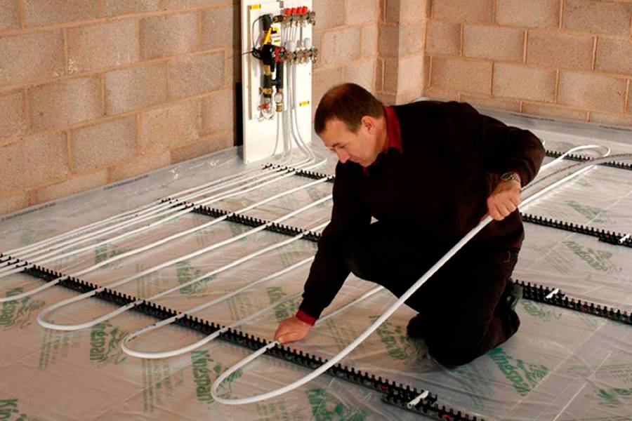 Закончив подготовительные работы по основанию, начинают прокладку системы труб, по которым будет перемещаться водяной теплоноситель: