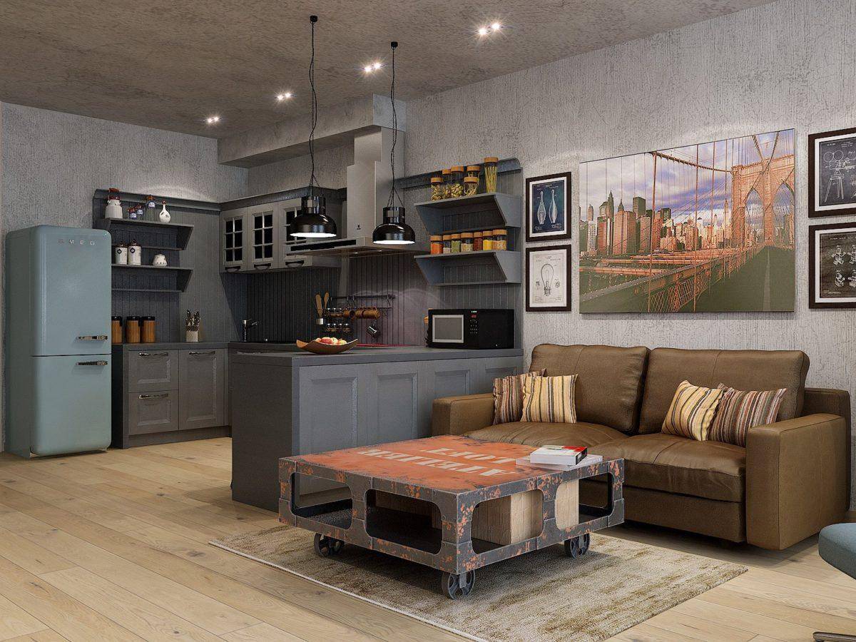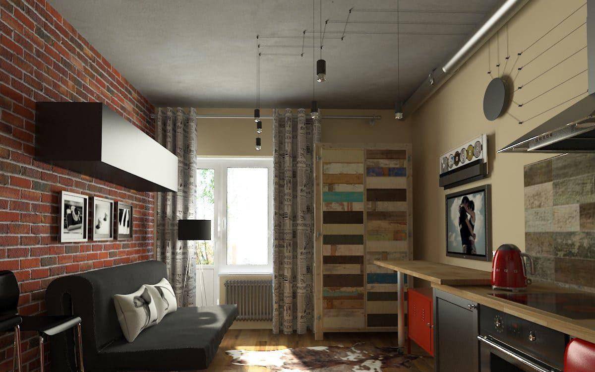 Стиль лофт не предполагает большого количества мебели и подойдет активным молодым людям