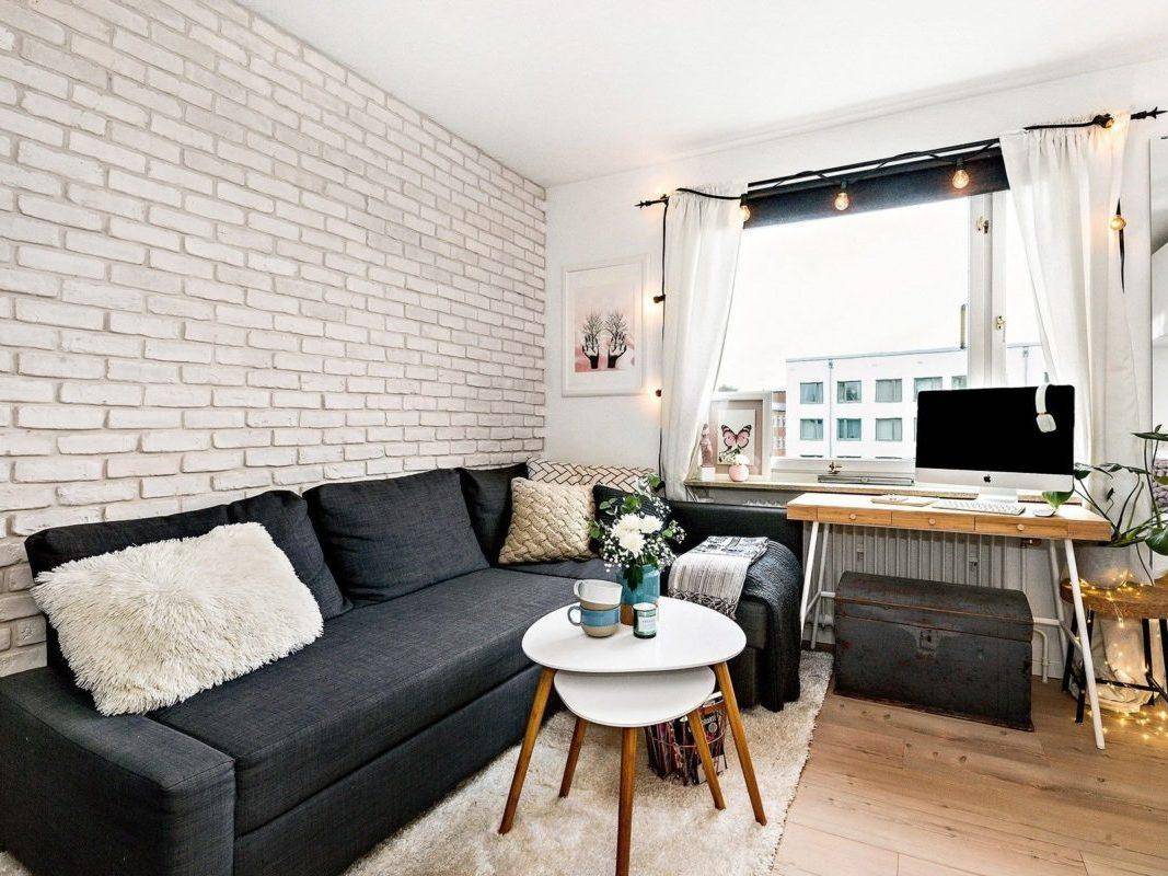 Основные принципы скандинавского дизайна – светлые тона, небольшое количество тёмных или ярких акцентов, минимализм и практичность – отлично подходят для квартиры-студии. Стиль приветствует натуральные материалы: для пола подойдёт паркетная доска или керамогранит, гарнитур выбирают из натурального массива или его качественной имитации.
