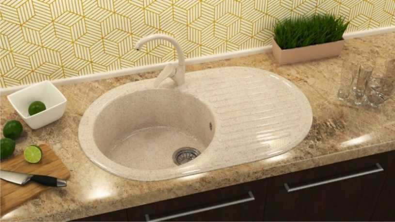 В этом разделе цены на товар начинаются от 1070 рублей за изделие. Самым дорогим вариантом считается мойка за 9820 рублей. Большинство раковин из искусственного камня имеют врезную модификацию. Формы, как и в случае с моделями из нержавейки, представлены с основными параметрами: