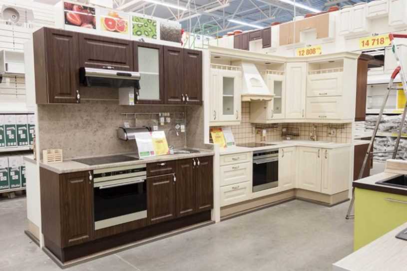 Благодаря каталогу товаров из Леруа Мерлен 2020 г. покупатель оформит кухню «от и до». Практичные и лаконичные модульные кухни представлены разнообразными оттенками: белая кухня, сосна, дуб, орех. Отдельно продающиеся напольные и навесные модули позволяют реализовать любой проект кухни.