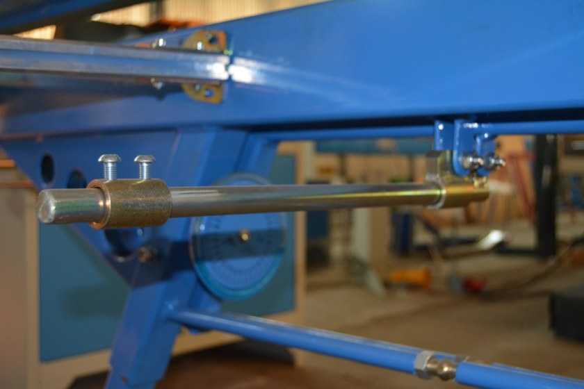 - подготовить полку. Для этого понадобится швеллер (50 мм), из которого надо будет собрать прямоугольник 100 на 30 см. Затем в собранной полке следует проделать отверстия под валы и нарезать резьбу, необходимую для реализации возможности изменять силу воздействия прижимного вала;