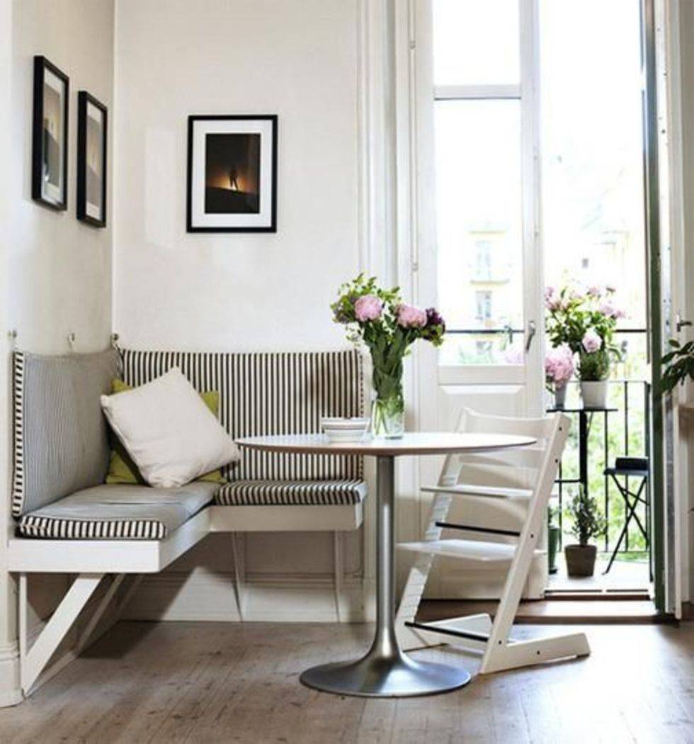 - В маленькой кухне в квартире, для экономии пространства лучше не использовать слишком громоздкие конструкции, например отличным решением станет компактный кухонный уголок, раскладные или откидные модели.