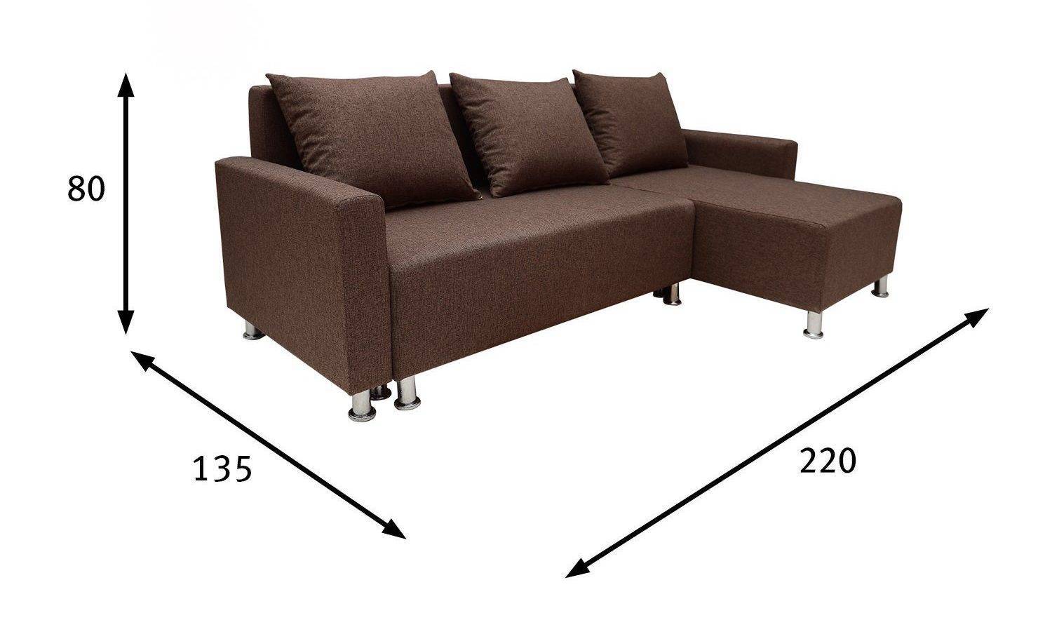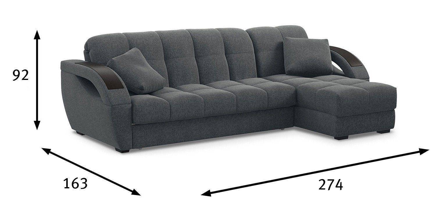С учетом конструкционных особенностей угловых диванов длина корпусной части измеряется от начала одной секции до конца другой