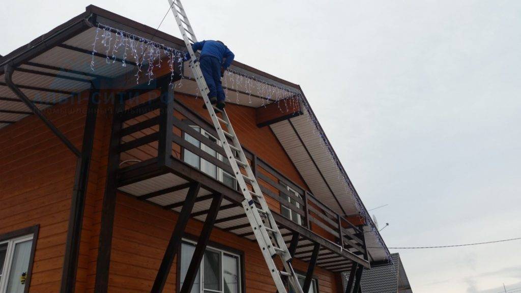Запаситесь стремянкой или телескопической лестницей, а также призовите на помощь кого-то из членов семьи. Одному натягивать гирлянду будет несподручно.
