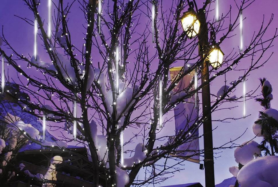 Светодиодные гирлянды с таким названием лучше других помогают создать неповторимую, сказочную и волшебную атмосферу праздника. Их используют не только на краях крыши загородного дома, но и на деревьях, высоких элементах приусадебного участка. Изделие представляет собой продолговатую светодиодную трубку, во время свечения которой создаются переливающиеся блики. Эти гирлянды используют для оформления беседки и гаража, крыльца и козырька загородного дома, что позволяет преобразить участок, сделав его более изысканным и привлекательным. Для подключения устройства нужен понижающий трансформатор, работающий от стандартной промышленной сети.