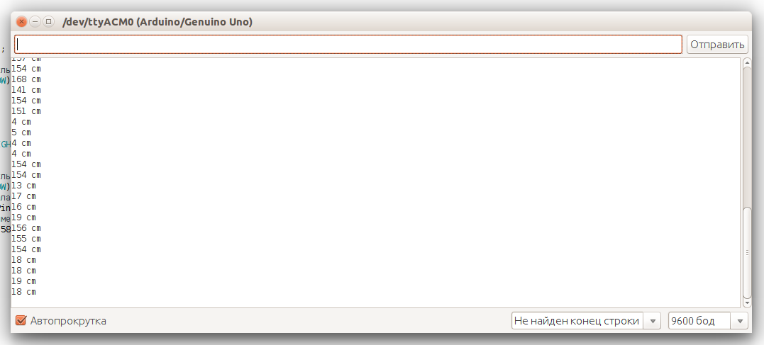 Там вы увидите расстояние от датчика до препятствия, поэкспериментируйте с изменением расстояния объекта.