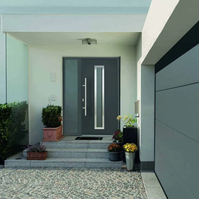 Дверь должна подходить по своему внешнему виду к цветовому и стилевому решению фасада дома, смотреться уместно и гармонично на этом фасаде.