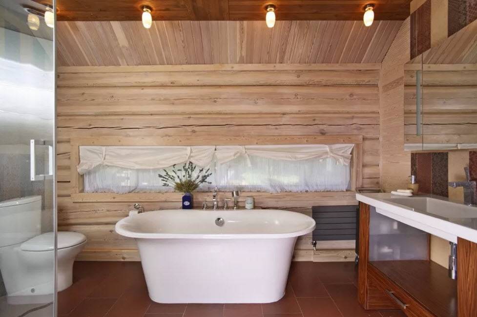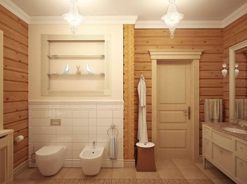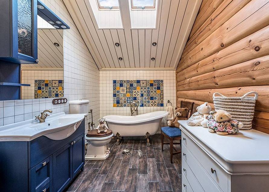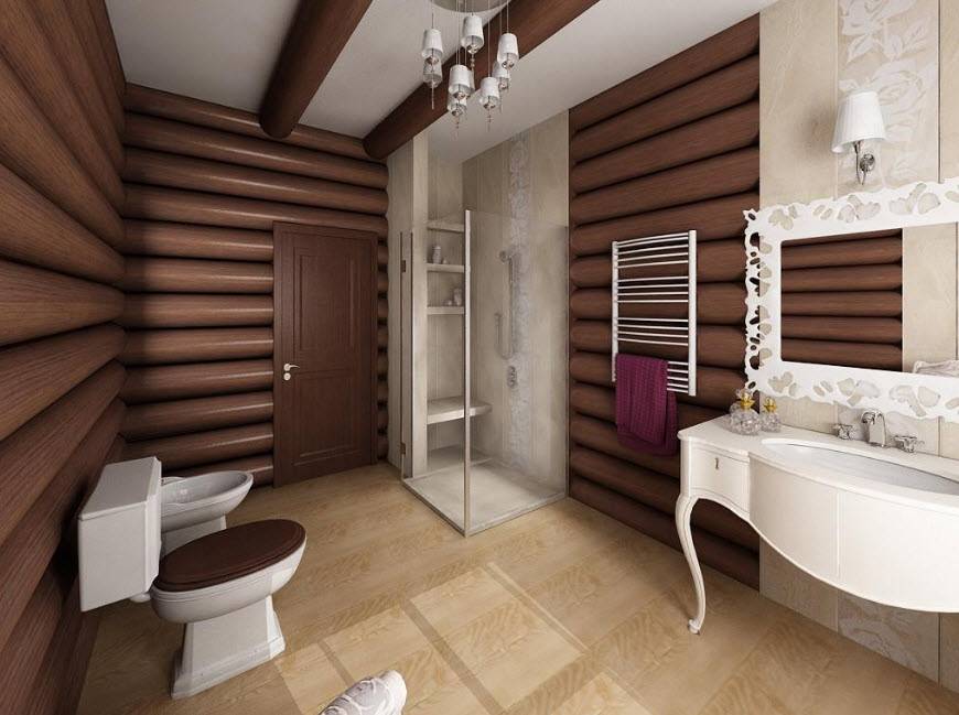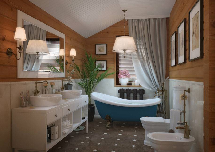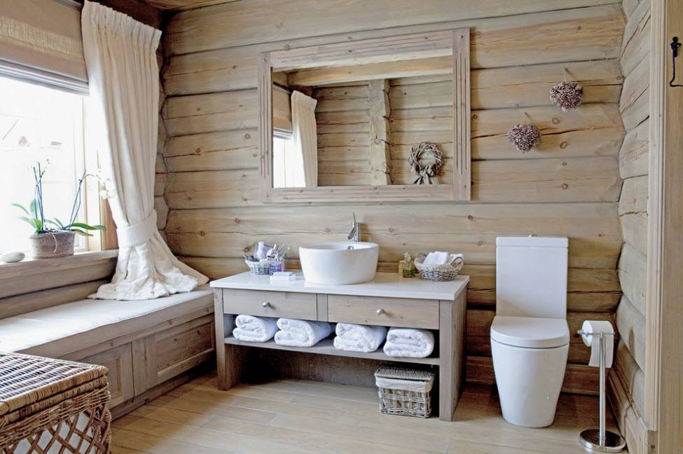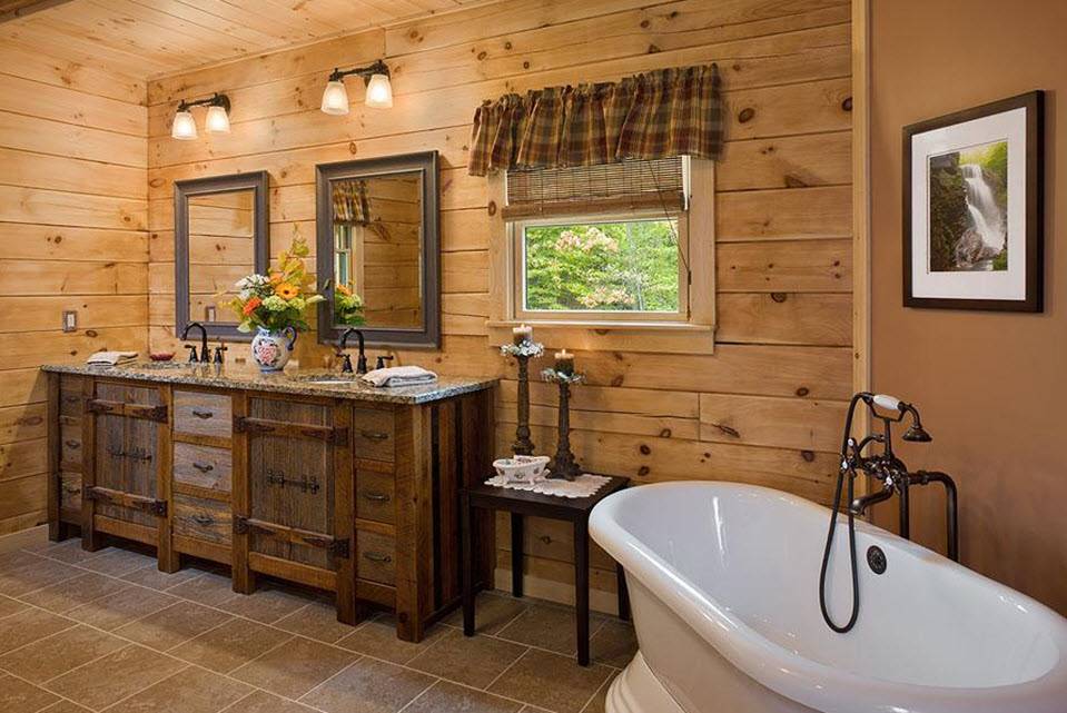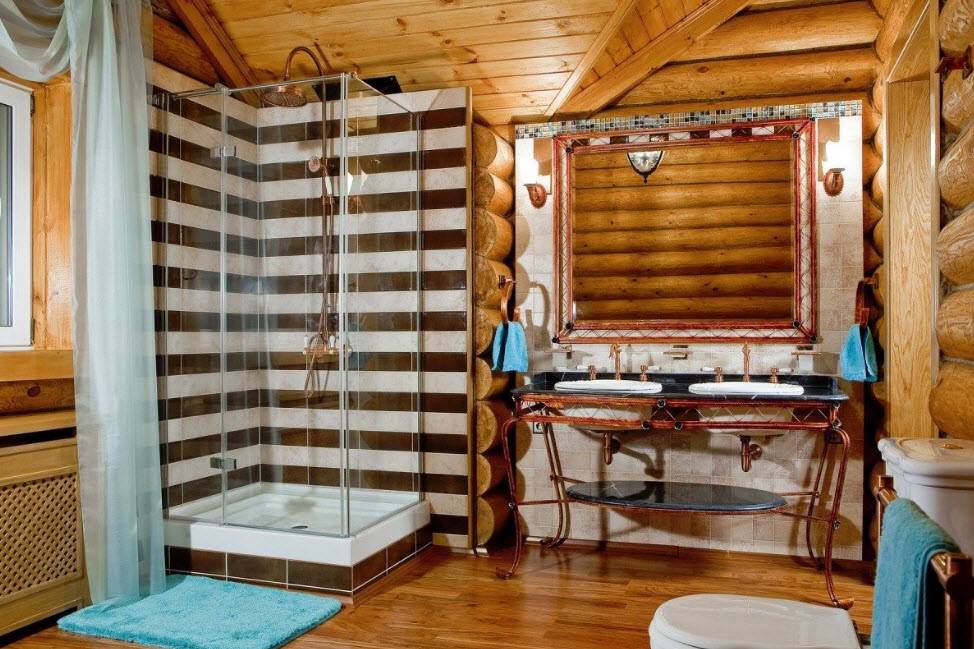 Стиль и цветовая гамма ванной в деревянном доме