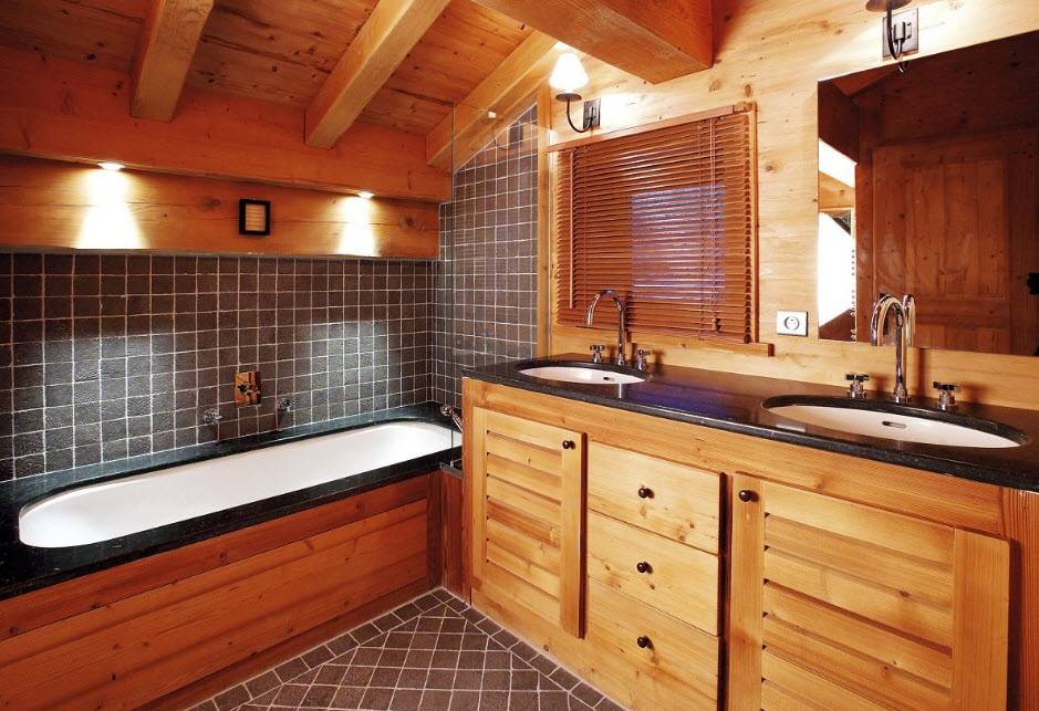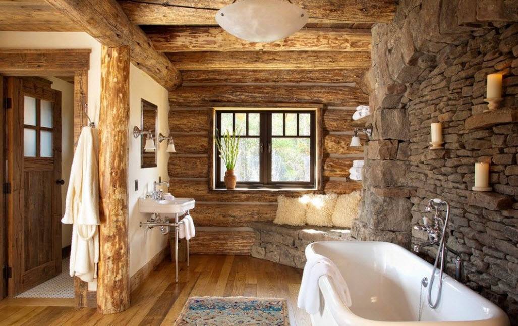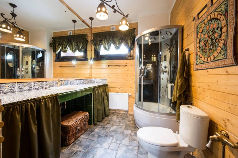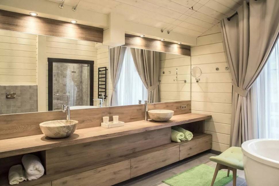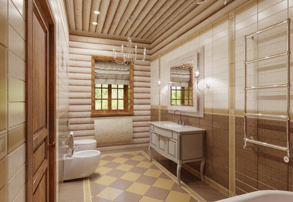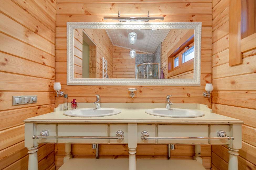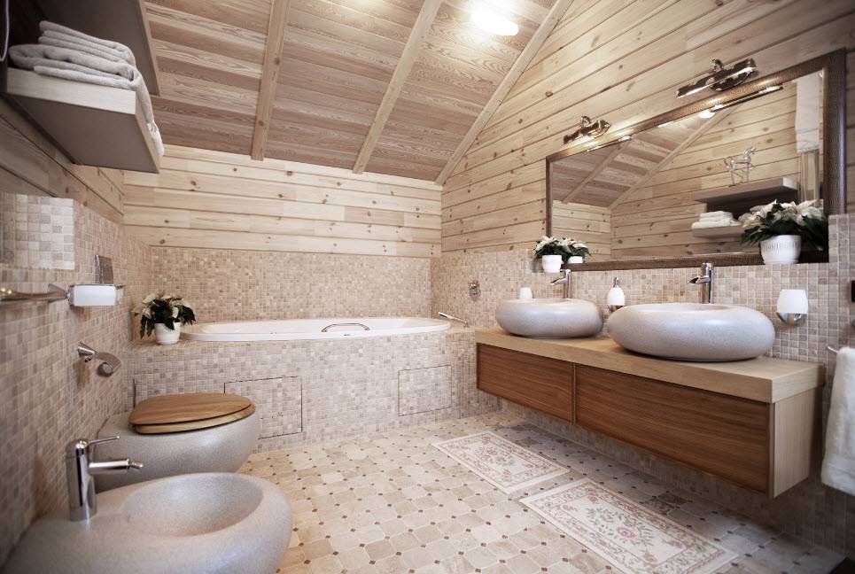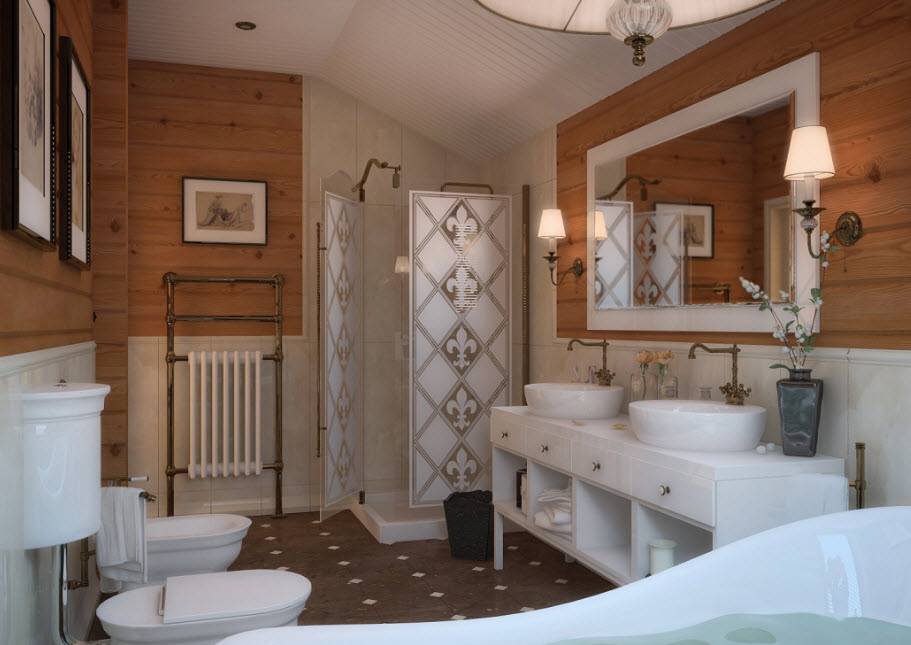 Стиль и цветовая гамма ванной в деревянном доме