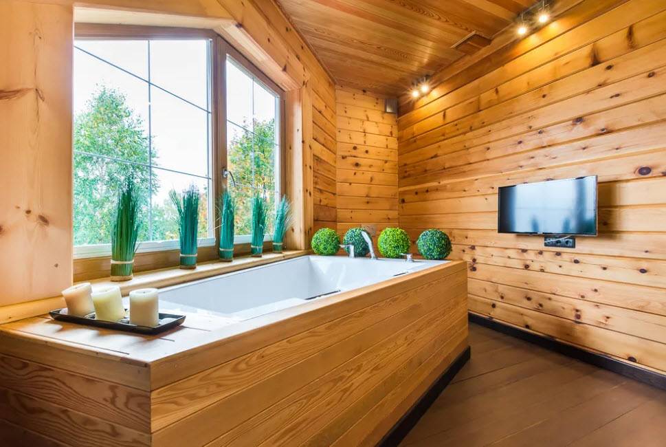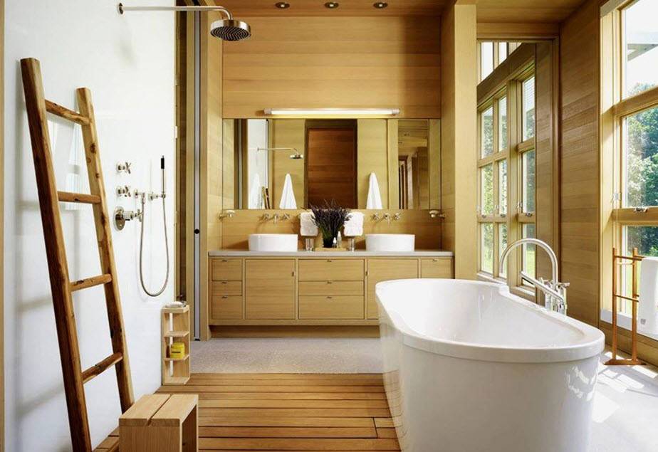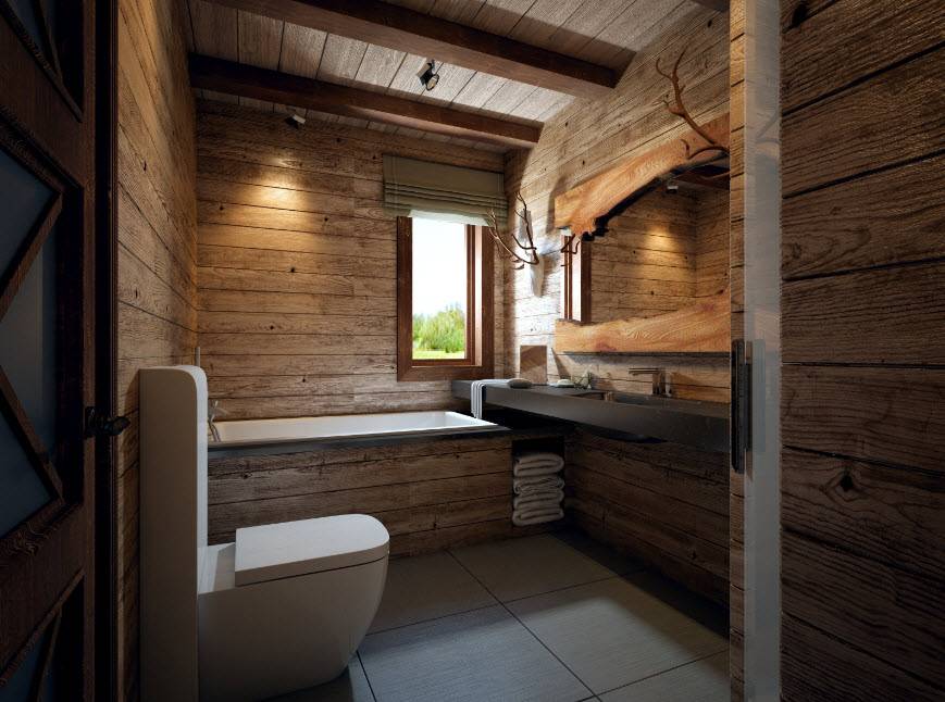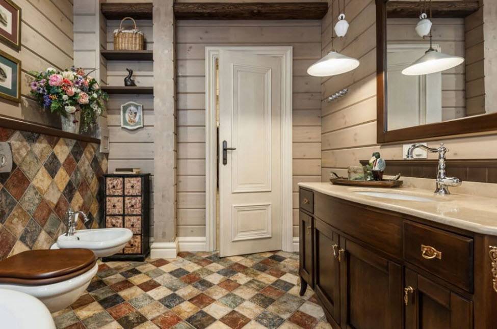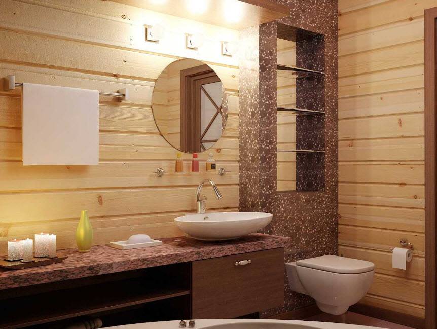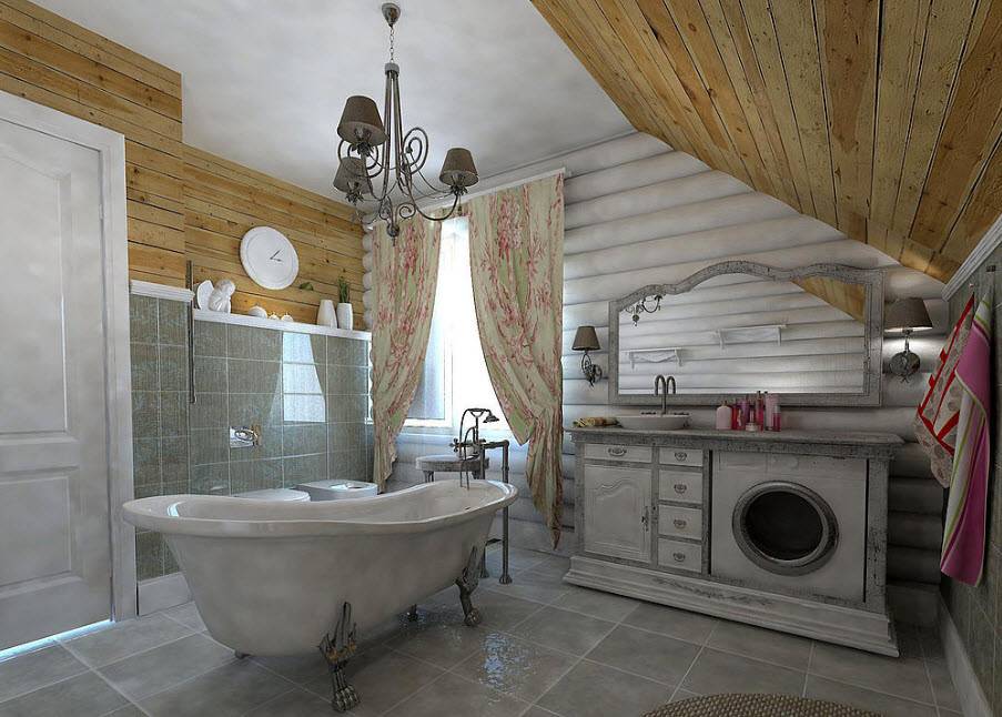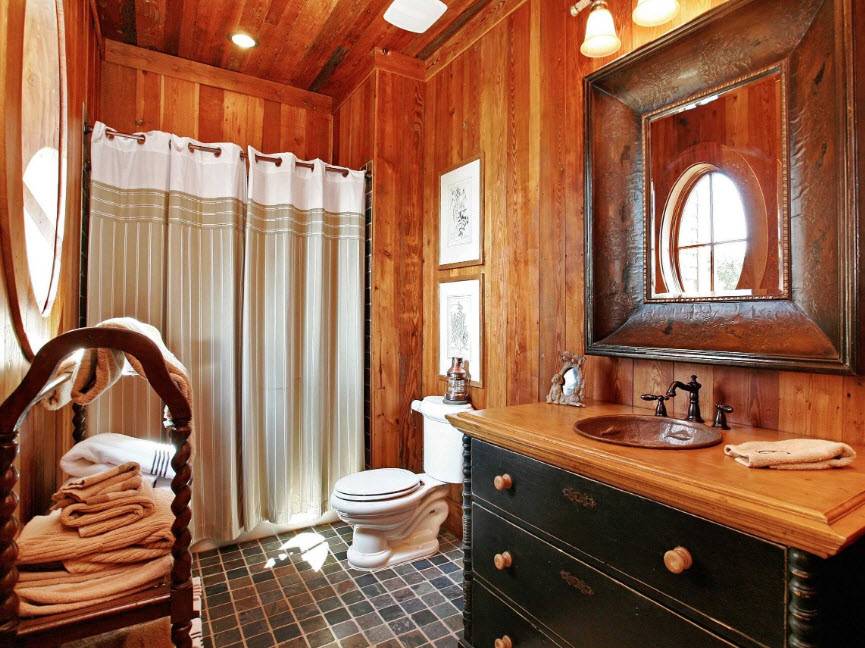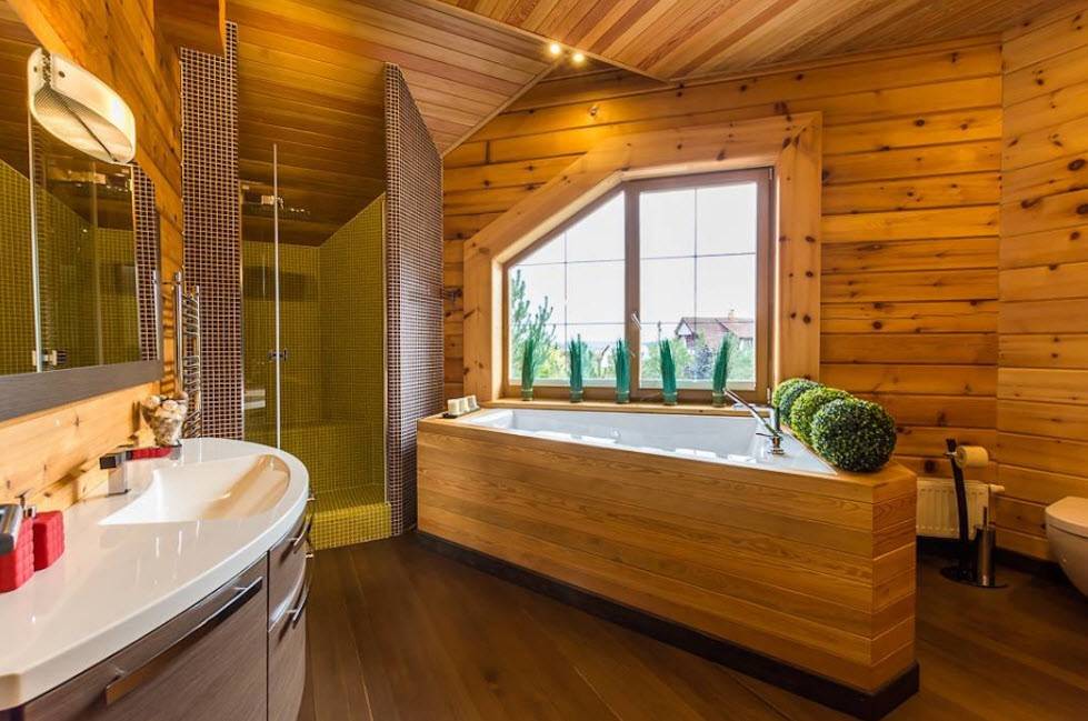 Стиль и цветовая гамма ванной в деревянном доме