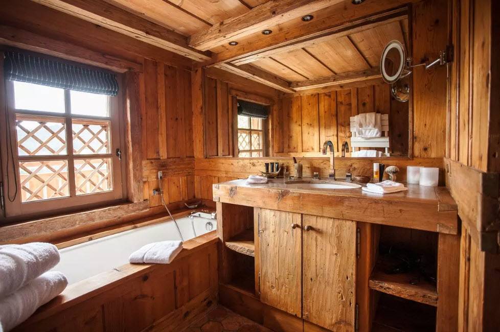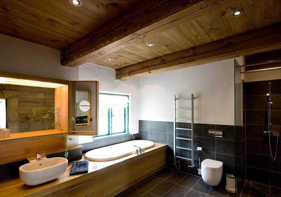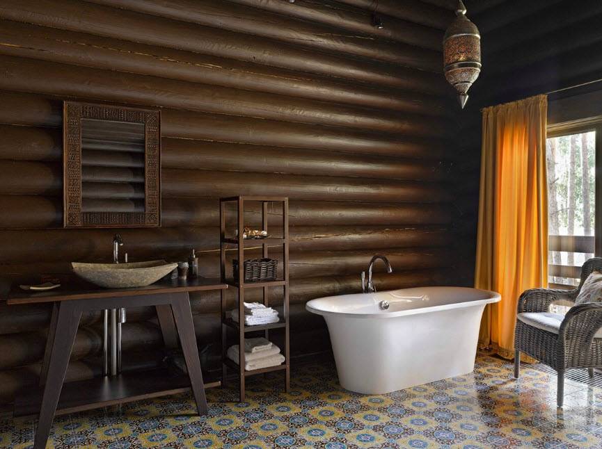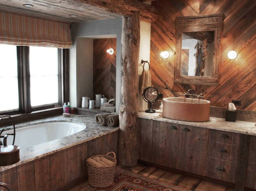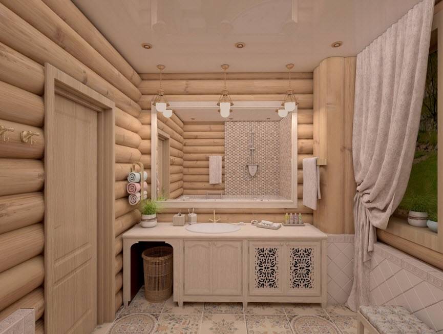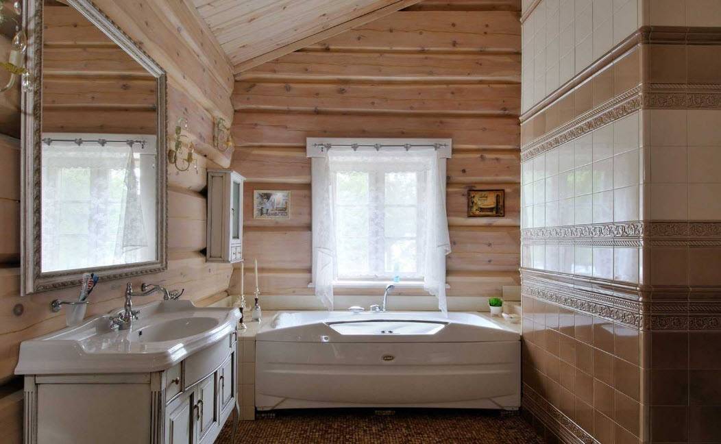 Ванная комната в деревянном доме: фото дизайна