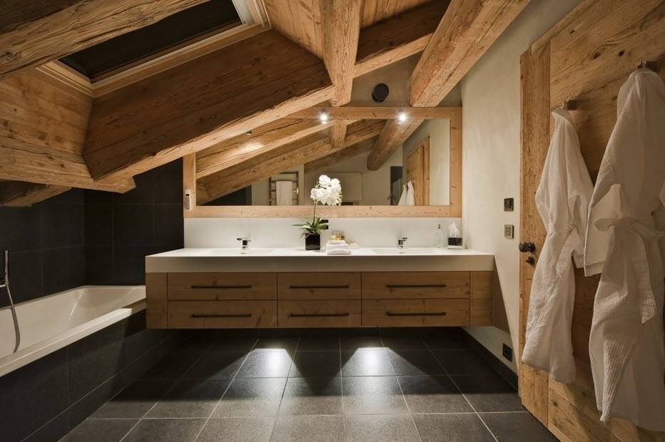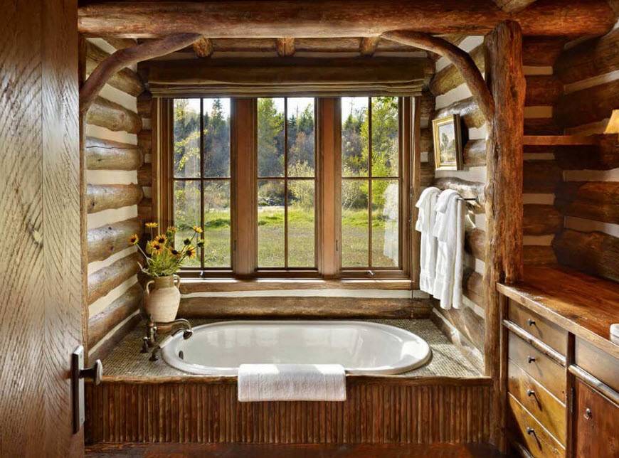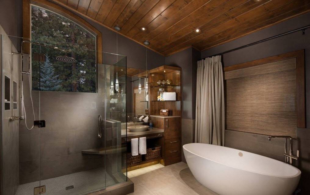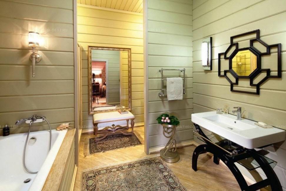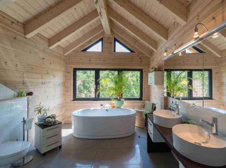 Ванная комната в деревянном доме: фото дизайна