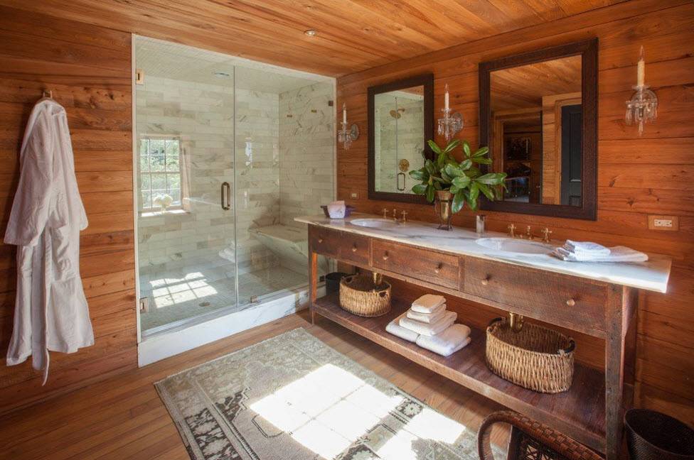 Грамотно и правильно обустроенная ванная в деревянном доме не создаст каких-либо неприятностей или проблем. Соблюдение приведенных в статье правил и инструкций позволяет обустроить любую ванную комнату в деревянном доме в соответствии со своими вкусами и пожеланиями.