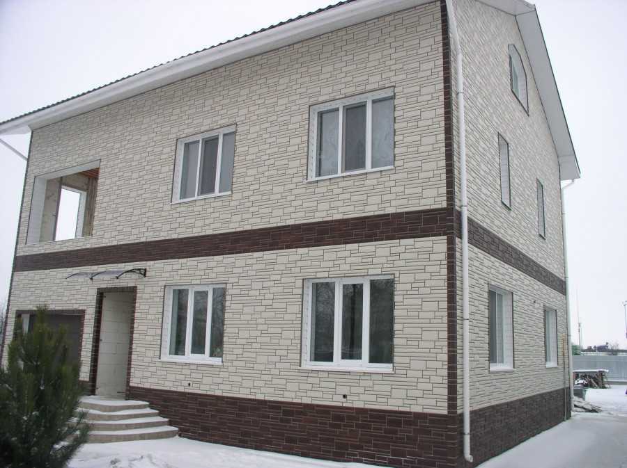 Виниловый в сочетании отделкой цоколя частного дома сайдингом под натуральный камень