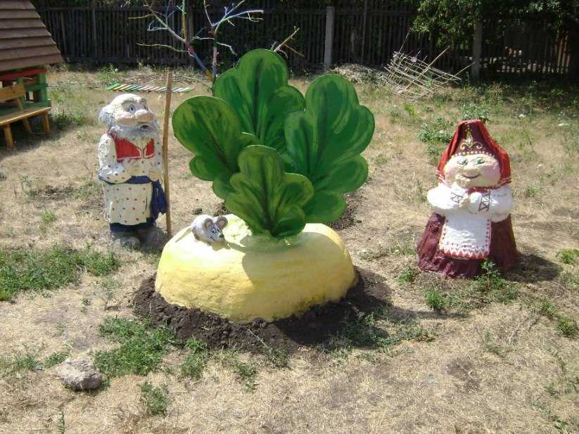 Помимо героев из сказок, животных или человечков, в дачный декор органично вписываются необычные цветники, клумбы и горшки.