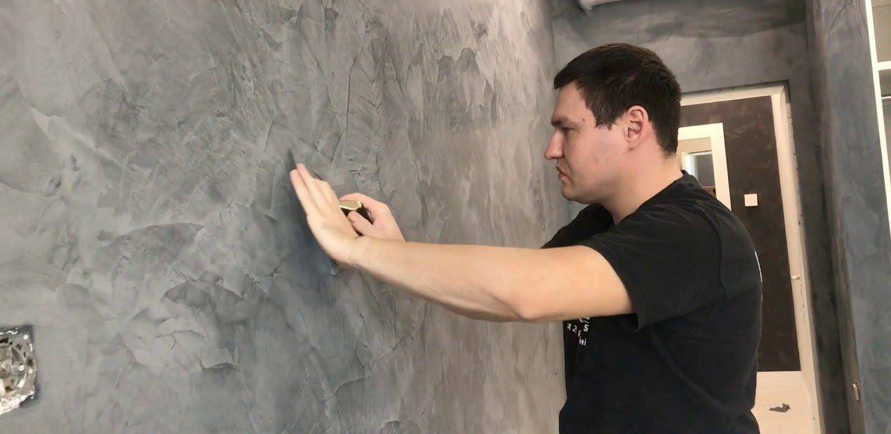 Накладывать его специфическими «рваными» движениями и сразу же затирать. Согласно технологии, выполняется от трех до десяти слоев. Каждый из них нужно насухо тщательно отшлифовать.