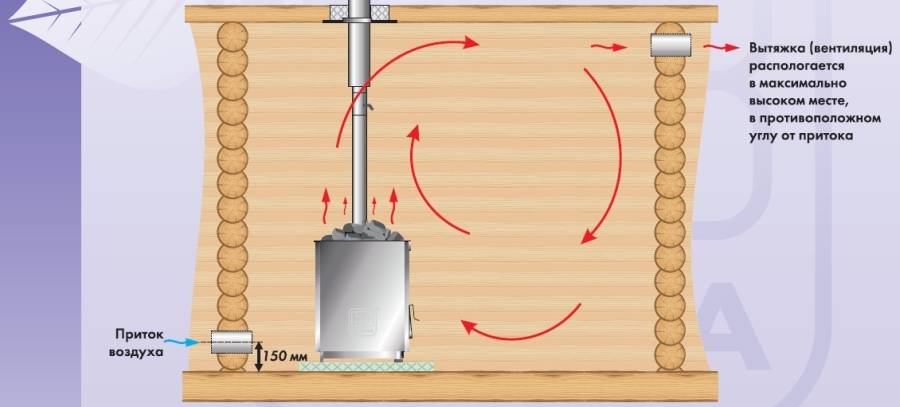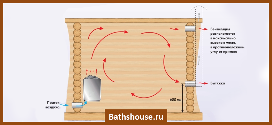 Устраивать вентсистему в бане необходимо с расчетом, чтобы вытяжка: