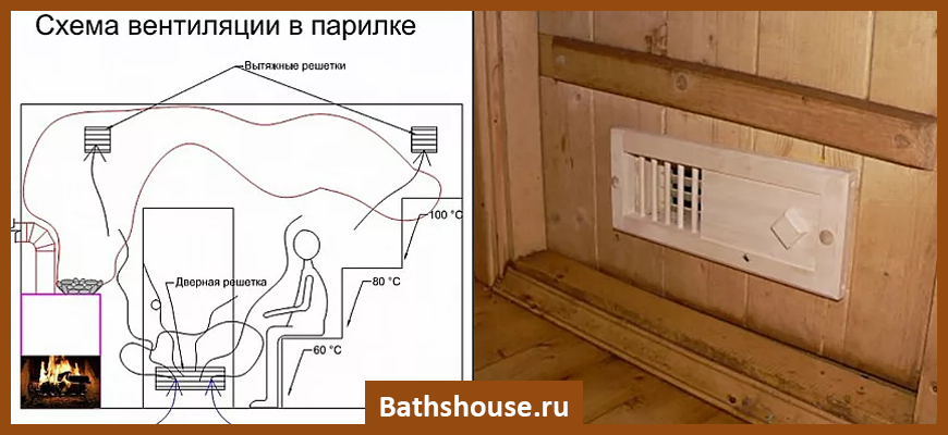 За час один человек выделяет до 18 литров углекислого газа. Без вентиляции в маленькой, забитой людьми парилке концентрация углекислого газа достигнет опасных для жизни величин за короткое время. Через вентиляцию из помещения удаляется углекислый газ и поступает кислород.