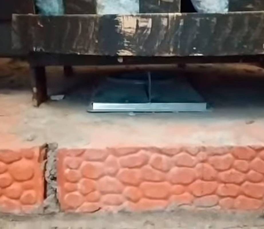 Подвал. Парная комната готова. Единственное отверстие – входная дверь. Уже хорошо. Для организации приточной вентиляции используем ее. Проще – вырезать лобзиком внизу двери отверстие, поставить жалюзи, решетку.