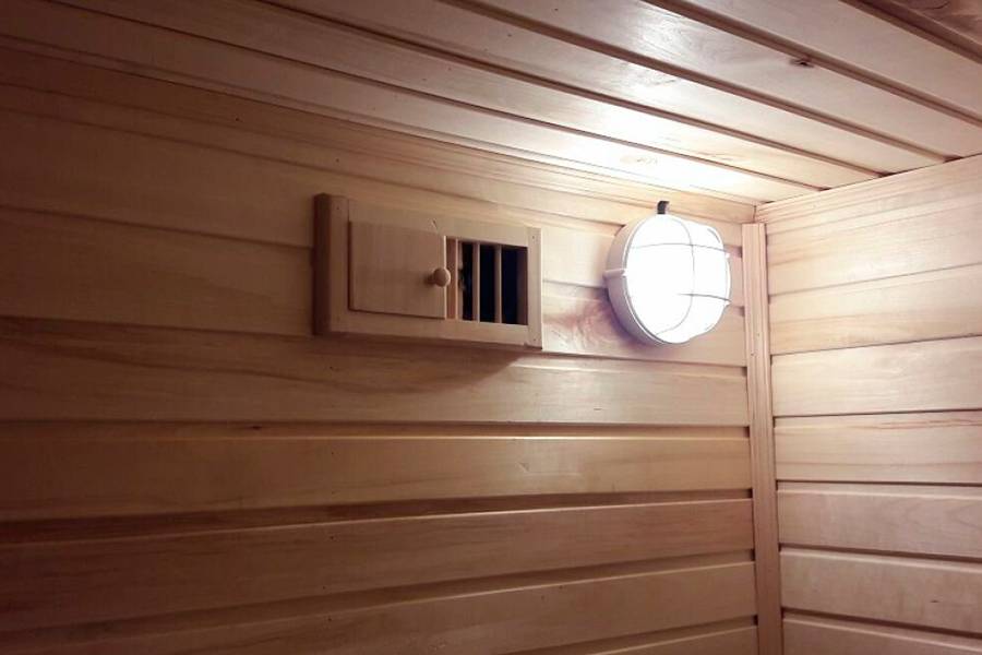О возможных способах обустройства вентиляции в данном помещении мы рассказали, а потому знаем, что здесь нужно сделать два отверстия – для вытяжки и притока воздуха. Стоит заметить, что люди, считающие, будто в парилке всегда должно быть жарко, а оттого и диаметр вентиляционных каналов должен быть небольшим, заблуждаются – это вообще не соответствует строительным нормам. А если ваши отверстия слишком большие и вы уверены, что через них выходит чересчур большое количество тепла, можете просто периодически их затыкать, используя заранее сделанную для этих целей заглушку.